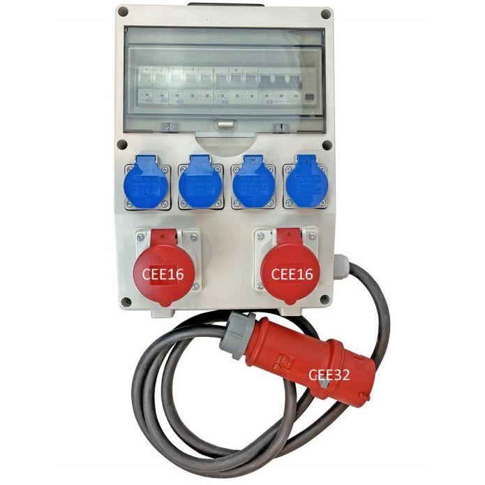 Stromverteiler CEE32-Stecker auf CEE16 + T23 Steckdosen