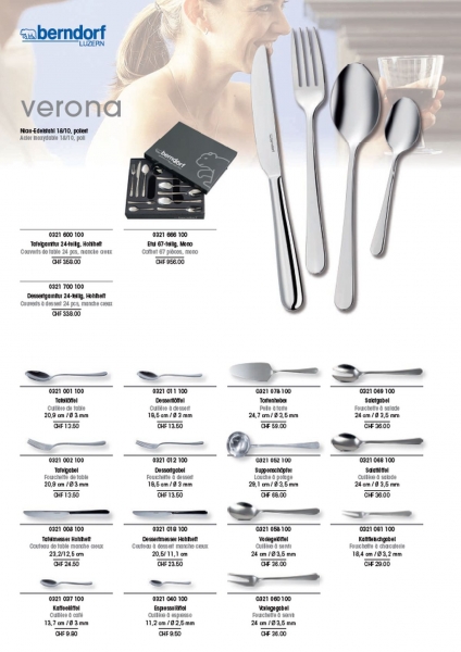 berndorf verona 24-teiliges Tafelbesteck - 0321 600 100 in denWarenkorb berndorf verona 24-teiliges Tafelbesteck CHF 369.00 Statt Fr. 458.-- nur Fr. 369.-- inkl. Versand