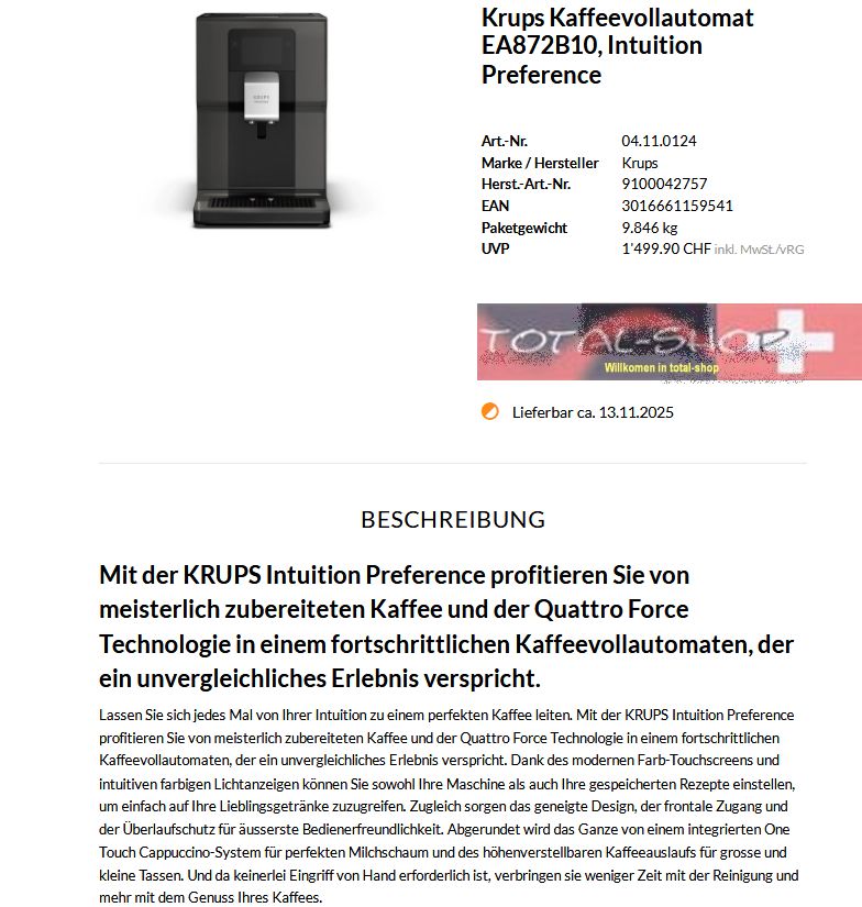 Krups Kaffeevollautomat EA872B10 - 04.11.0124