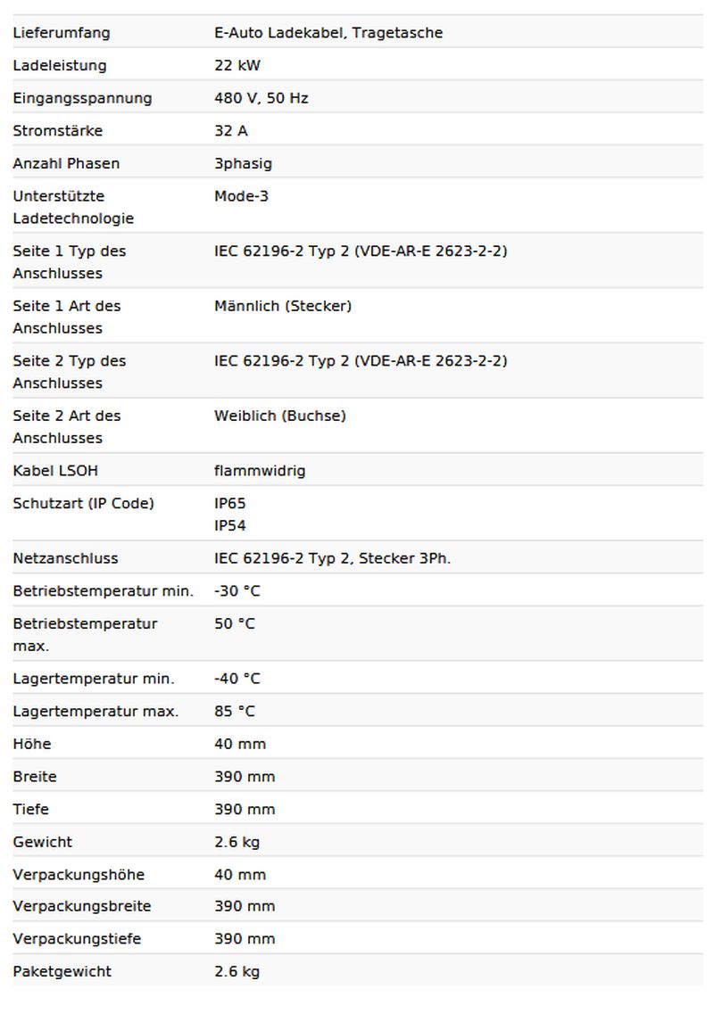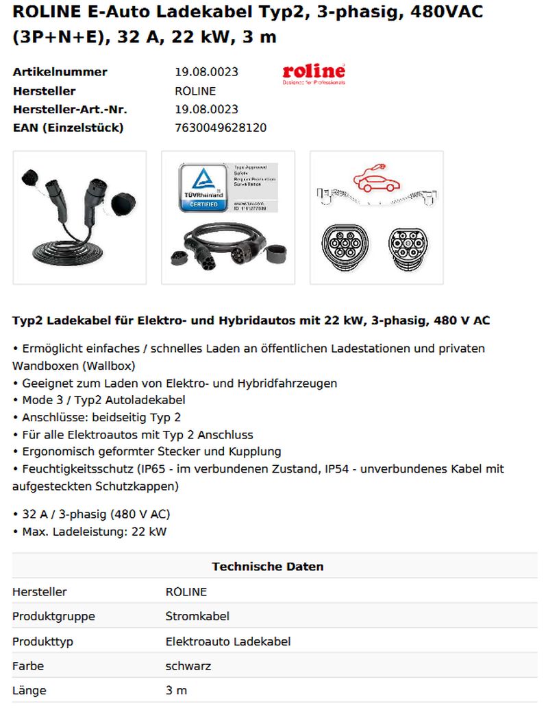 Produkttyp Elektroauto Ladekabel